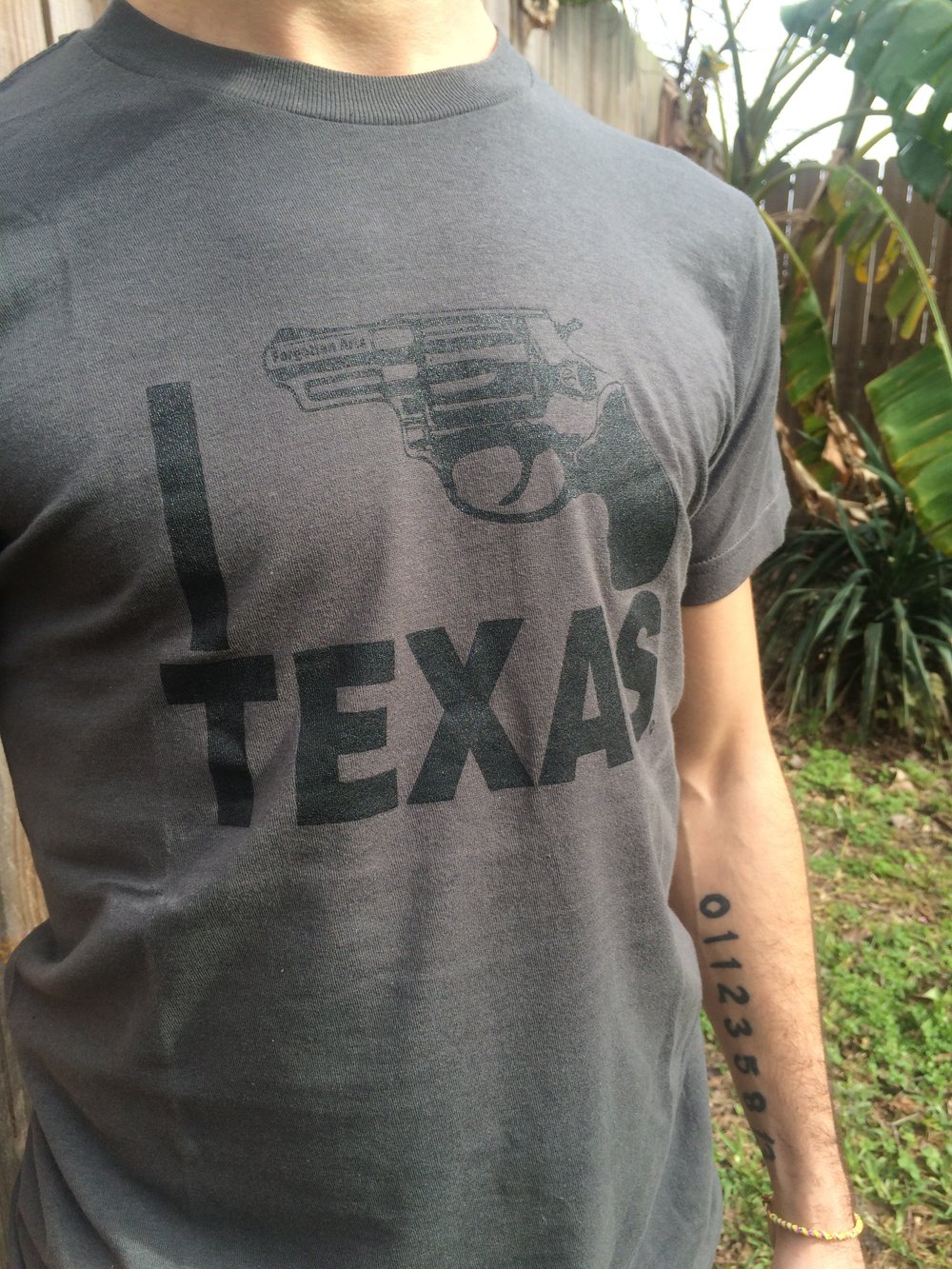 The I Bang Texas tee is a screen printed design on a pre-shrunk 100% cotton crew neck tee.